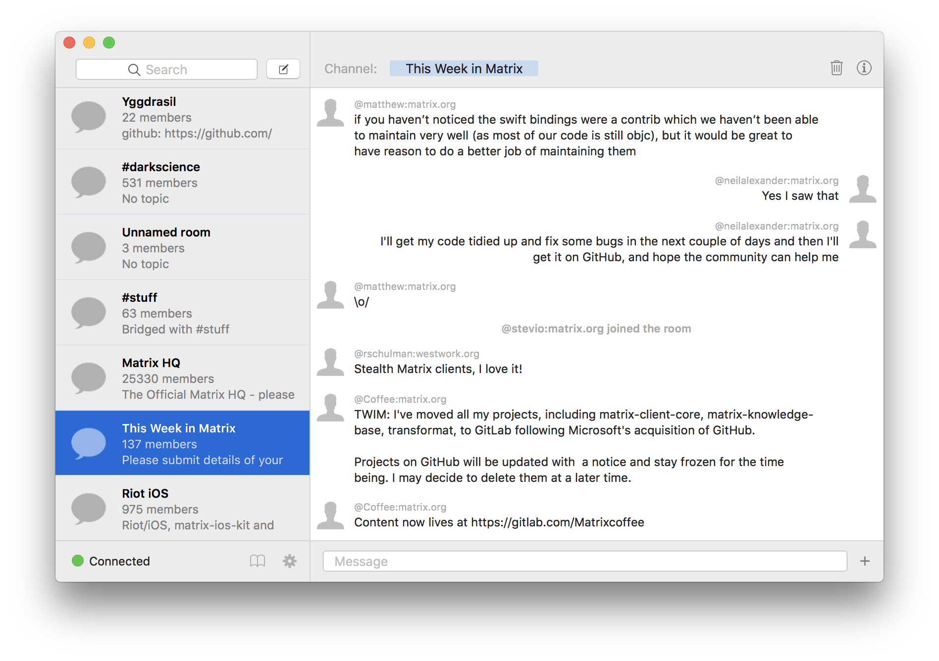 As always, if you have things to say, projects to advertise, or anything else, ping me or visit #TWIM:matrix.org. I'm keen to get everyone included and keep this community enthused about all the work going on in the Matrix ecosystem.