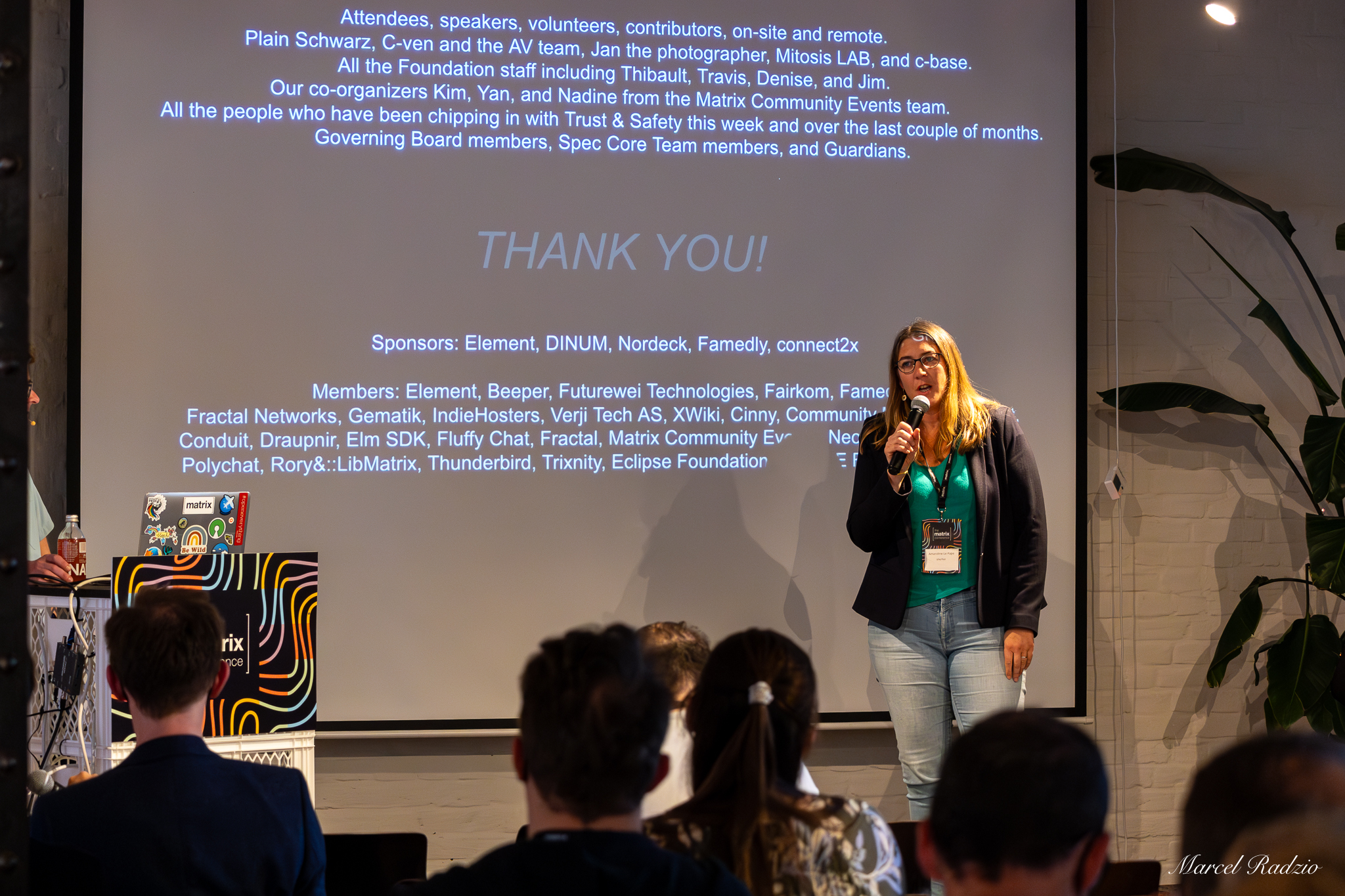In the meantime, a big thanks to everyone who attended, spoke, and helped make it happen. We hope you had a great time and learned a lot about Matrix and the community. We hope to see as many or more of you next year!