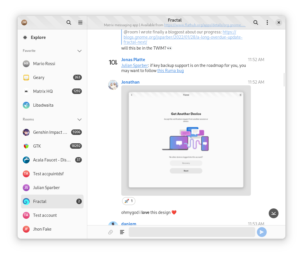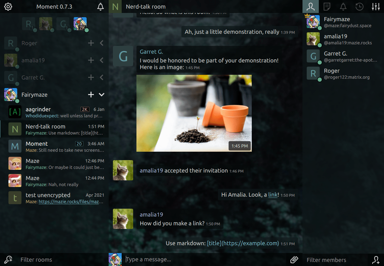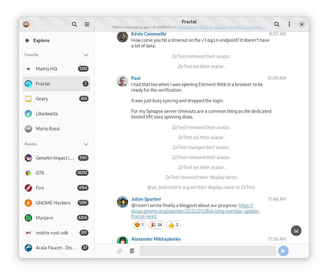 With all these changes we're very close to supporting all of Matrix v1.1 (and Matrix v1.2 too!), with the only major omission being Secure Secret Storage and Sharing (SSSS). Some work on that was done as far back as last year's GSoC but it was blocked on a medium-sized refactoring of how we handle account data. I'm planning to get that over the finish line over the next weeks.
