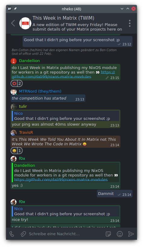See you next week, and be sure to stop by #twim:matrix.org with your updates!