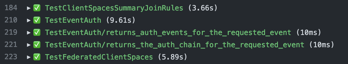I have been asked by numerous people over months if there are any kind of graphs comparing Synapse and Dendrite. Up until now, my answer has been "as far as I know, no". However, this got me thinking whether I can use Complement to engineer some kind of performance testing infrastructure. After hacking on it for a day or two, I can now share some of the work I've done in this area. There now exists two new binaries in the Complement repo: perftest and perfgraph. The former will run some tests and output a