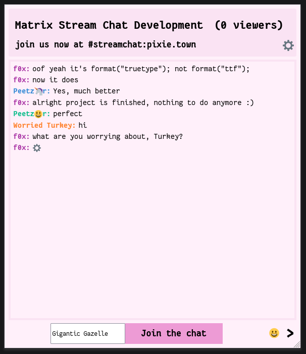 unstable-pre-spec, after: most things behind dedicatedunstable-mscXXXXfeatures) [@zecakeh]matrix.toURI parsing [@zecakeh]MatrixUritype [@zecakeh]All of these changes are available in version 0.5.0 which was released about two weeks ago.