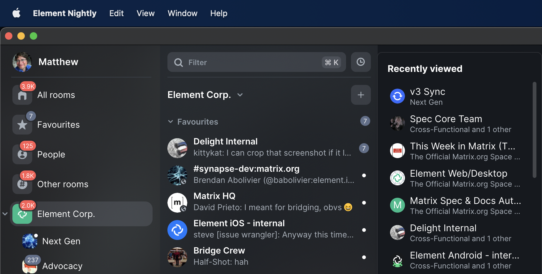- Gathering feedback to incorporate into the next phase of development, join us for the community testing session on Monday at 17:00 in #element-community-testing:matrix.org