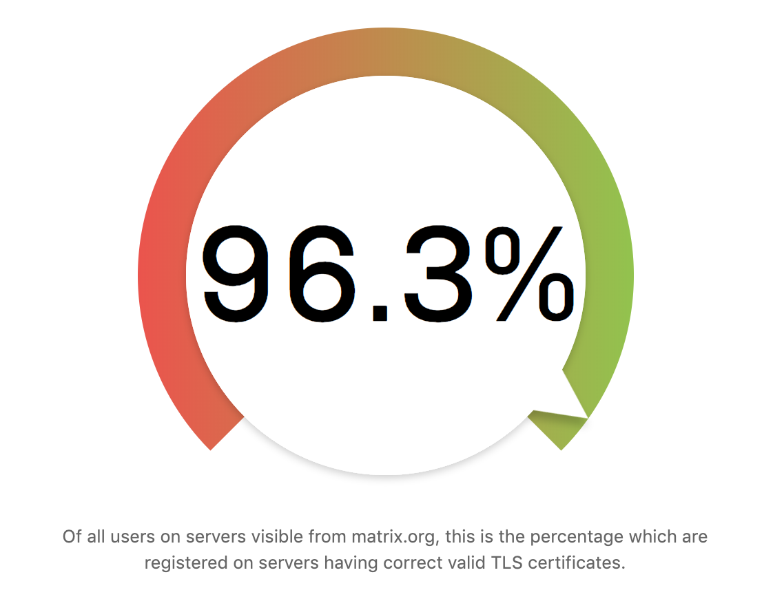 Aside from our infrastructure, we’re also extending the process of regularly checking for security updates to also checking for outdated dependencies in our distributed software (Riot, Synapse, etc) too, given the discipline to regularly chase outdated software applies equally to both.
